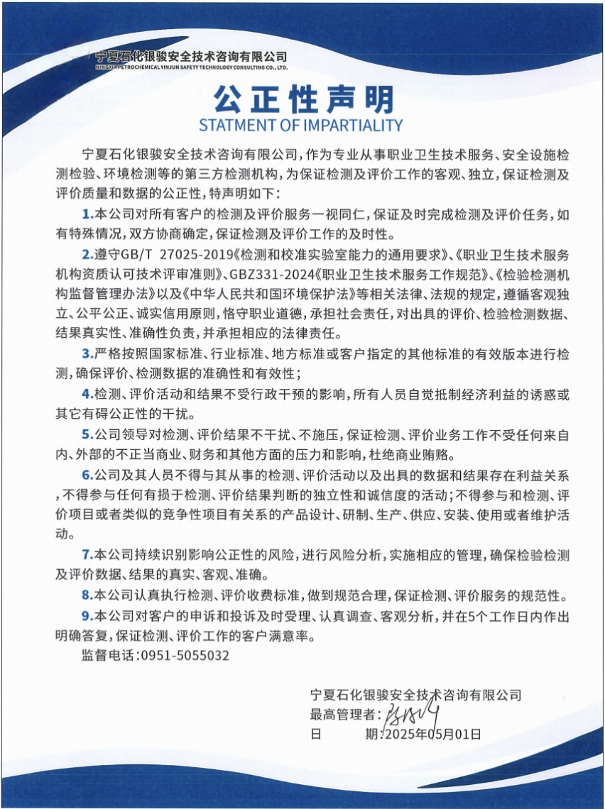 您好!欢迎光临宁夏石化银骏安全技术咨询有限公司网站!